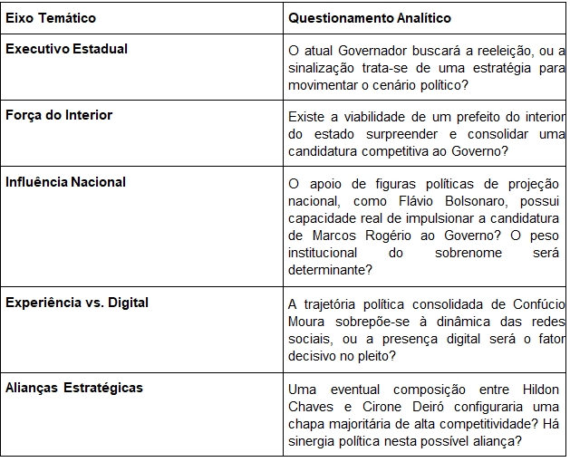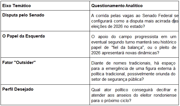 O monitoramento contínuo destas variáveis será essencial para antecipar os movimentos do tabuleiro político de Rondônia rumo a 2026.