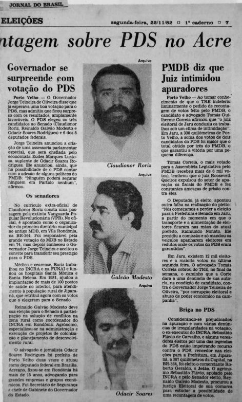 1982 – Os Correios tem 80 mil formulários de “voto em trânsito”, para eleitores de outros estados que se encontrem em Rondônia.