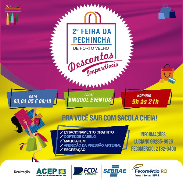 Os melhores produtos com preços mais em conta você vai encontrar na Feira da Pechincha 2018, é uma super promoção, o comércio vendendo tudo mais barato. Calçados, confecções, assessórios, e muitas opções de compra com descontos que são um verdadeiro achado.