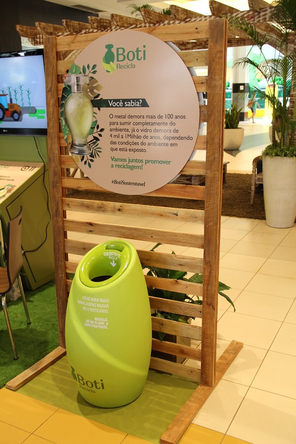 Batizada de ‘Boti Recicla’, a iniciativa chama a atenção para a campanha permanente de logística reversa e reciclagem do Boticário. Os coletores ficam presentes durante todo o ano nas lojas e os consumidores são incentivados a fazer o descarte sustentável das embalagens depois que o produto termina.