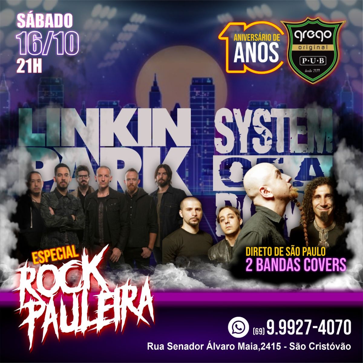 Com o tema: "Rock Pauleira", a festa do pub porto-velhense que hoje é uma referência no cenário nacional deste seguimento, será neste sábado, dia 16, a partir das 21h , com apresentação do DJ Mario Enrique e os shows de duas bandas paulistanas, Soldiers, cover do Link Park, e a D.A.O.s, cover do System of Down.
