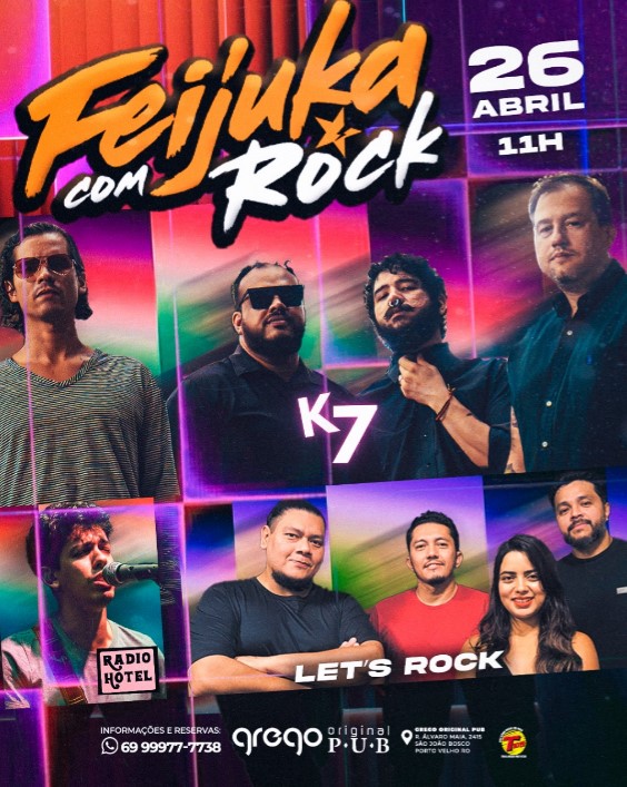 Para você que curte uma balada no fim de tarde, a fejuka com rock é uma excelente opção para o seu sábado. Casa aberta a partir das 11 horas, com delicioso almoço e logo após, a balada mais rock and roll de Porto Velho começa. É uma programação completa, você pode inclusive curtir em família, a casa conta com espaço kids com monitor infantil sem curso adicional nenhum.