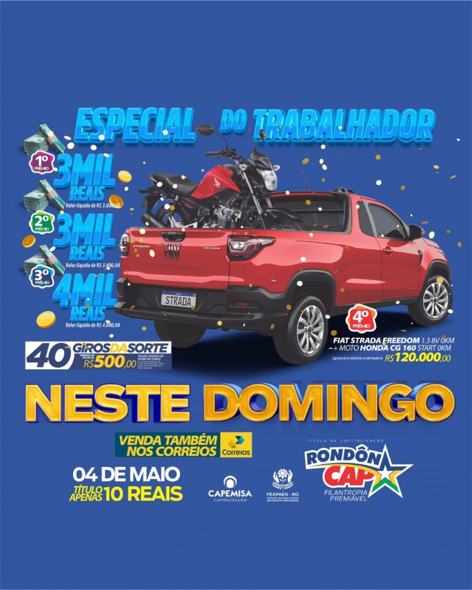 RONDÔNCAP: Especial da semana trabalhador e o Titulo só 10 reais