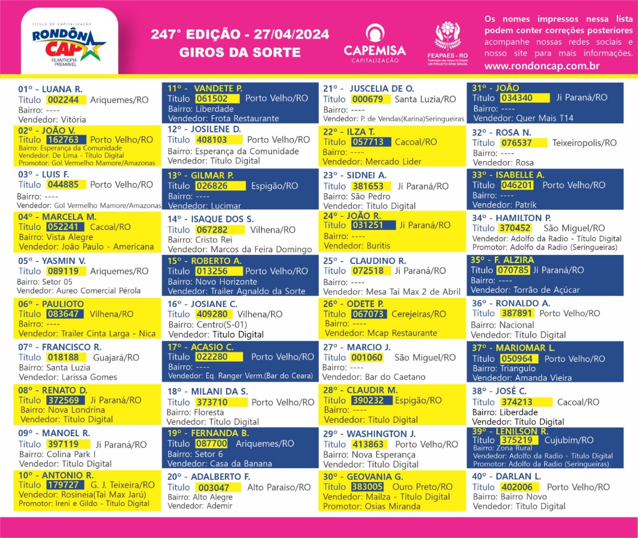 Acesse o Site: www.rondoncap.com.br e conheça todos os ganhadores!