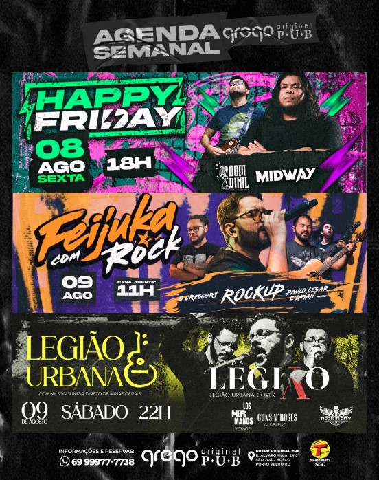 A Rock in City Produções traz para Porto Velho/RO no dia 09 de Agosto, Nilson Jr. diretamente de Minas Gerais, com o melhor cover de Legião Urbana— interpretando os maiores sucessos do eterno Renato Russo. Pré show com especial Los Hermanos e pós show com a banda Oldblend que fará o especial Guns N' Roses.