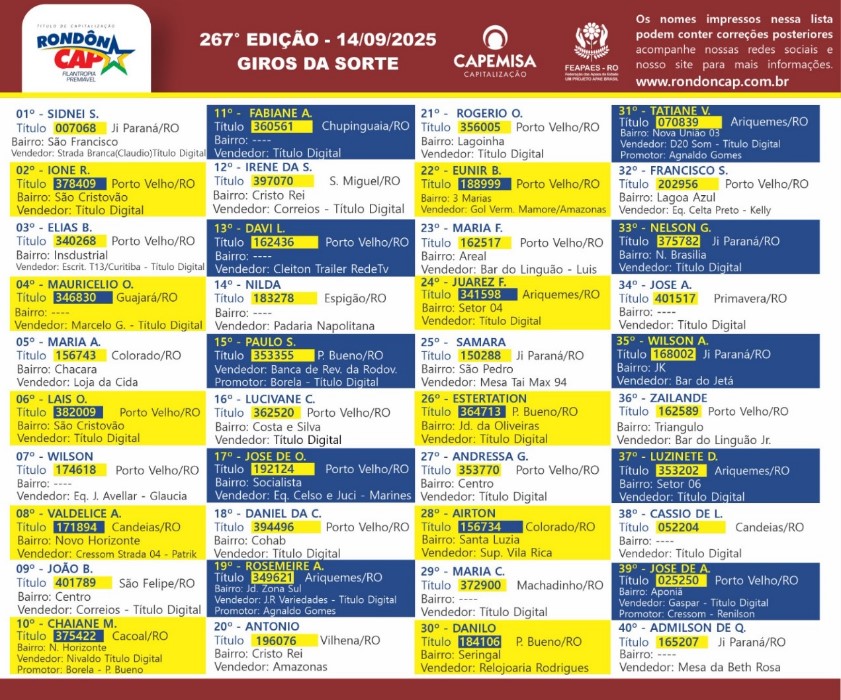 Todos os domingos tem gente comemorando, todos os domingos tem rondoniense ganhando premios do RondonCAP!