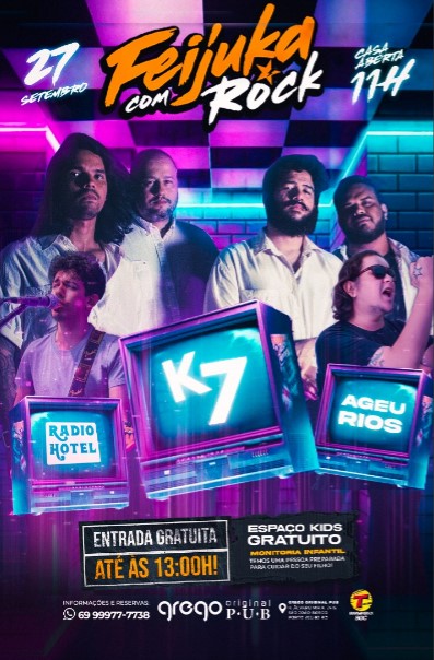 Para você que curte uma balada no fim de tarde, a fejuka com rock é uma excelente opção para o seu sábado. Casa aberta a partir das 11 horas, com delicioso almoço e logo após, a balada mais rock and roll de Porto Velho começa. É uma programação completa, você pode inclusive curtir em família, a casa conta com espaço kids com monitor infantil sem curso adicional nenhum.
