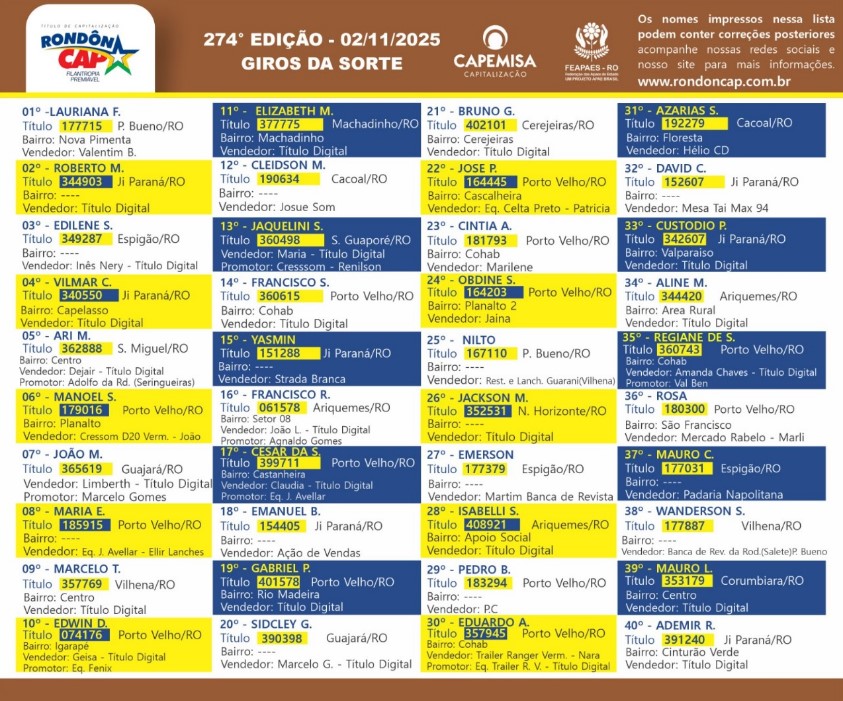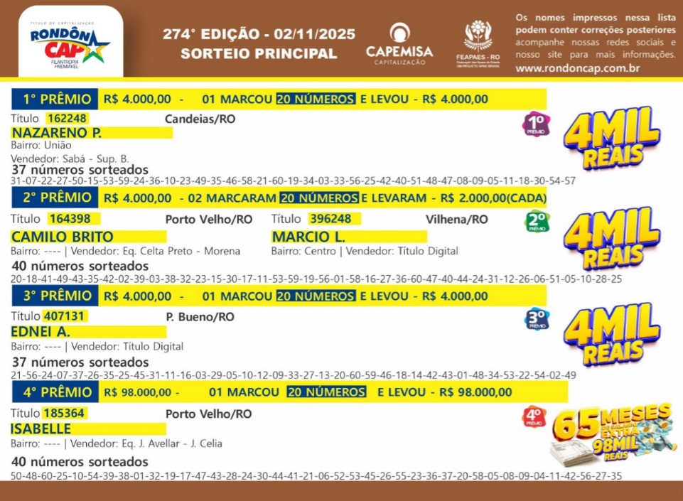 Compre seu RondonCAP Especial de novembro, ajude as Apaes e participe!