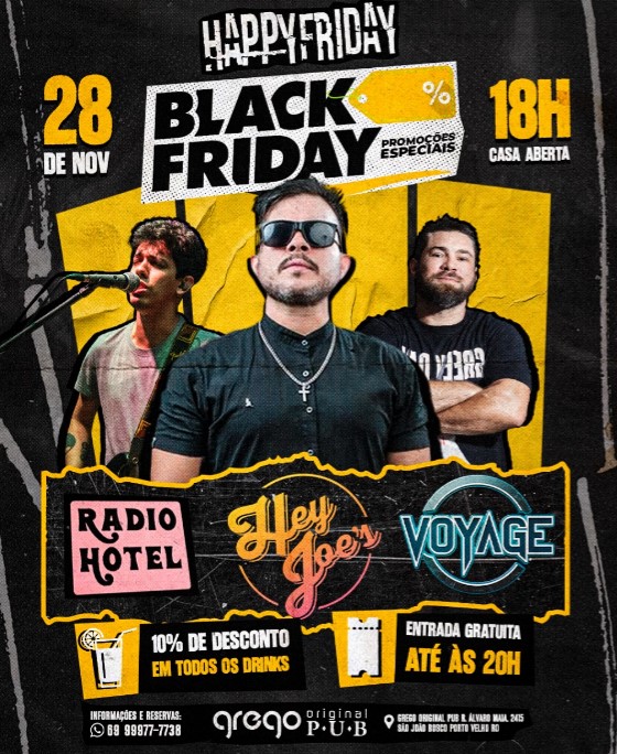 E em clima de Black Friday, todos os Drinks da casa estarão com 10% de desconto a noite.