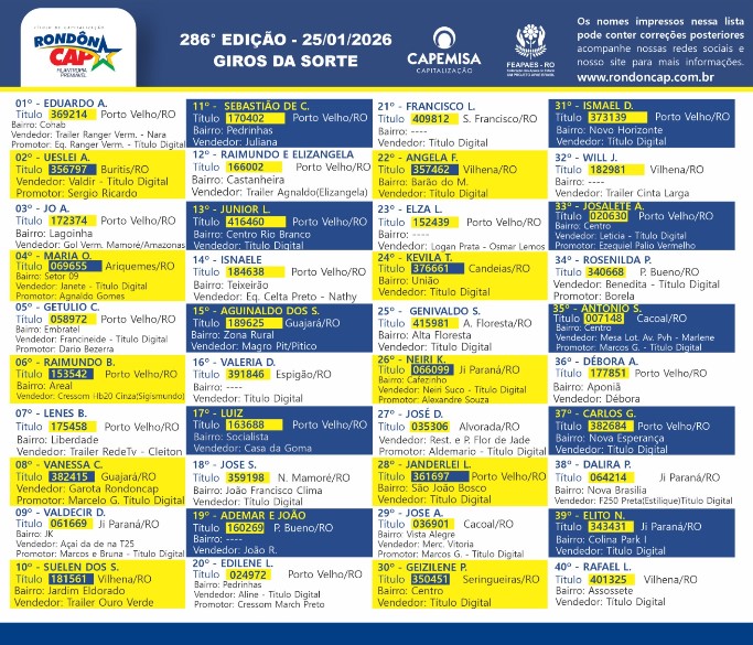 RondonCAP Especial de Aniversário com 100 mil no 4º prêmio e o Título só 5 reais.
