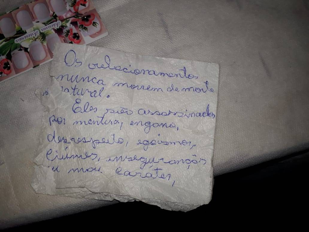 "Os relacionamentos nunca morrem de morte natural. Eles são assassinados por mentira, engano, desrespeito, egoísmo, ciúmes, insegurança e mau caráter", escreveu ela no bilhete.