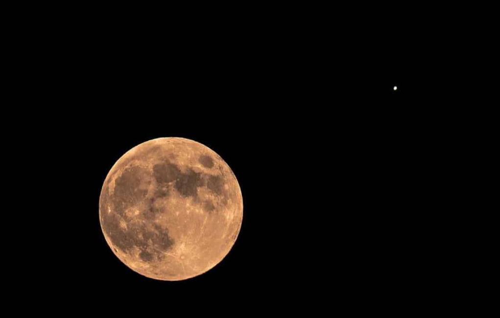 Um dos destaques da Superlua de janeiro será sua proximidade com Júpiter, o maior planeta do Sistema Solar. Com brilho intenso, Júpiter será facilmente visível a olho nu ao lado da Lua Cheia, formando um belo par no céu.