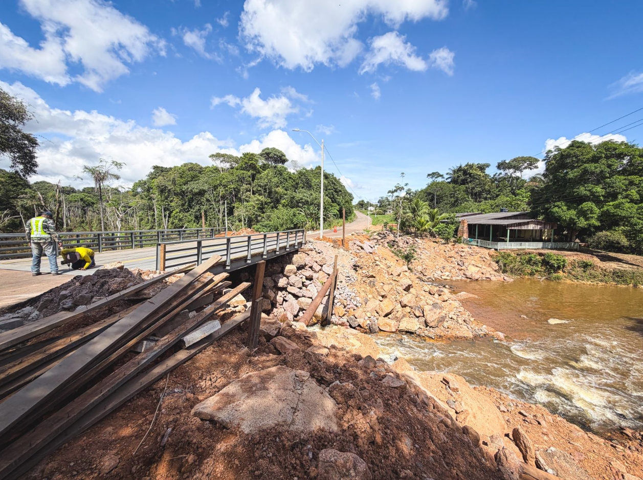 A obra ganhou prioridade após as fortes chuvas do fim de fevereiro abrirem uma cratera no local, interrompendo o acesso e obrigando motoristas a utilizarem uma rota alternativa pela Usina Hidrelétrica de Santo Antônio. Desde então, as equipes da Secretaria Municipal de Infraestrutura (Seinfra) atuaram de forma contínua na reconstrução e no reforço da área.