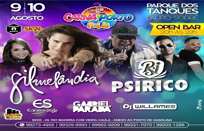 Atendendo recomendação do Ministério Público do Estado (MP-RO), o Carna Porto Folia será realizado no Parque dos Tanques, na capital. Inicialmente, estava programado para ocorrer na Avenida Imigrantes. O evento acontece nesta sexta,9, e sábado,10. Esta é a sua primeria edição da festa.