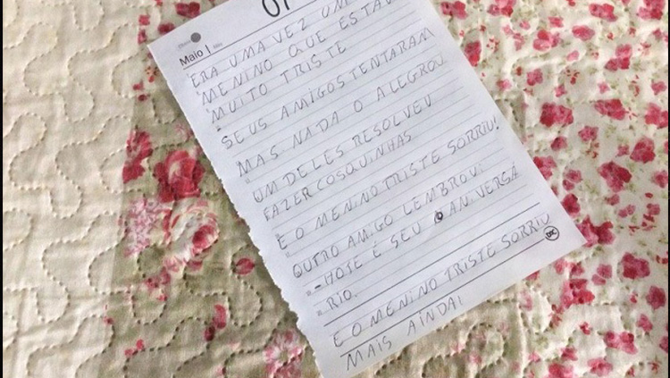 Transcreva a história para o livrinho. Se a criança já for alfabetizada, deixe-a fazer do jeitinho dela. Para auxiliar, desenhe linhas para ela escrever o texto. Caso não seja, você pode escrever em seu lugar.