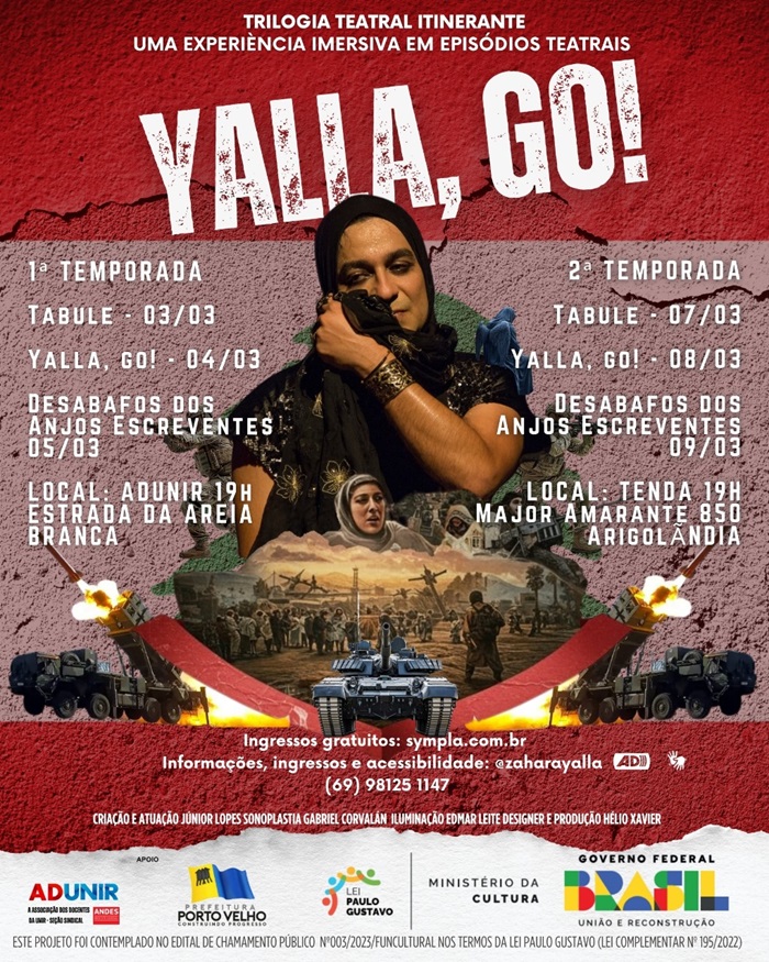 Compreendendo o teatro como um reflexo e um agente de transformação, a Trilogia Teatral Itinerante convida à solidariedade global, explorando crises contemporâneas como as guerras no Oriente Médio.