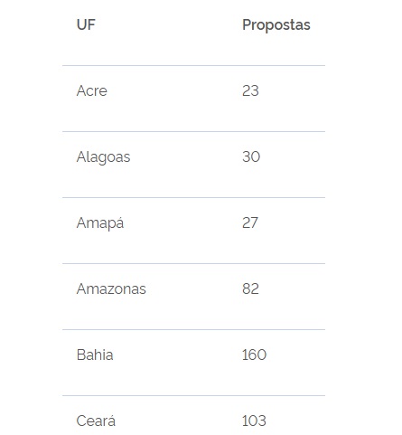 A região Nordeste registrou o maior volume de habilitações — 593 propostas —, com destaque para a Bahia (160), Pernambuco (108) e Ceará (103). Na região Norte foram 286 propostas habilitadas, lideradas pelo Amazonas (82), Pará (79) e Tocantins (48). A região Centro-Oeste concentrou 209, com destaque para os estados do Goiás (79), Distrito Federal (61) e Mato Grosso (36). Ao todo, 98.3% das propostas inscritas foram habilitadas no program