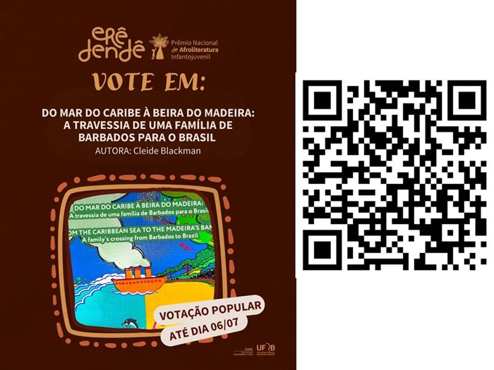 A votação se estende até o dia 06 de julho deste ano, no site e nas redes sociais do Prêmio Erê Dendê. É permitido apenas um voto por pessoa. Você encontra o livro para votação na página 2 (pelo computador) e página 3 (pelo celular).