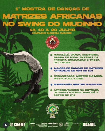 O evento acontece no Complexo da Estrada de Ferro Madeira-Mamoré, iniciando nesta sexta-feira,18, e encerrando no domingo,20. A ação é aberta ao público e inicia às 17h. Terá ainda aulão de danças africanas das 9 às 11h nesta sexta, sábado e domingo.