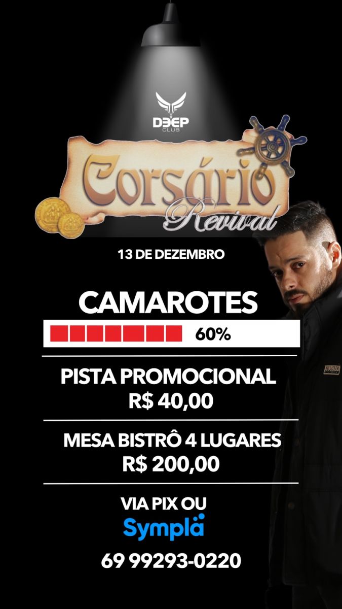 A lendária energia da era Corsário está de volta! No dia 13 de dezembro, na Deep Club, vamos reviver uma das maiores casa noturna de Porto Velho, Corsário Clube, será palco de uma noite histórica que celebra as três décadas de trajetória do ícone das pistas DJ Leudson.