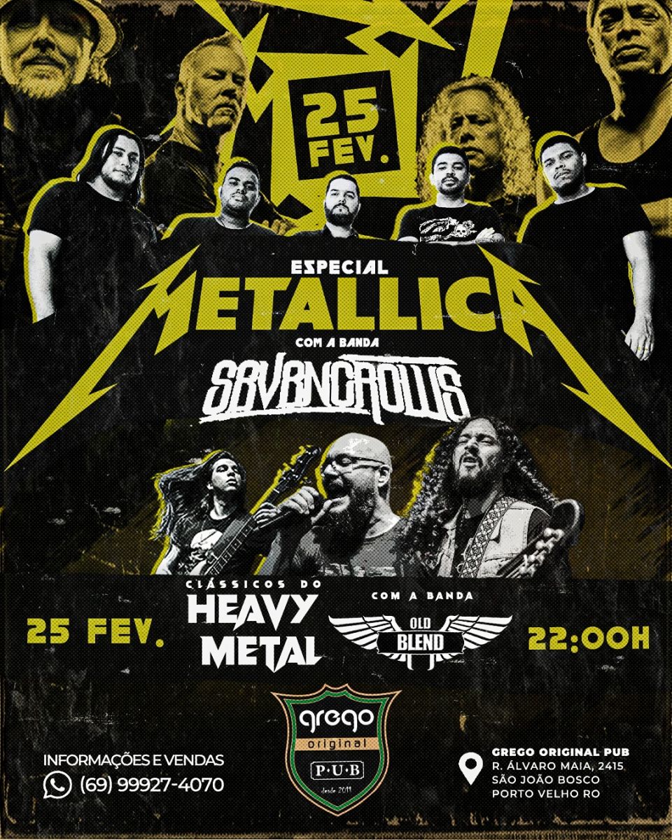A partir das 22h, vai rolar especial heavy metal com a banda Old Blend e o especial Metallica com a banda Sevencrows.