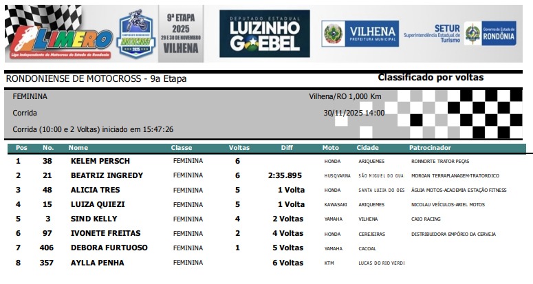 O município de Vilhena recebeu neste último final de semana a penúltima etapa do Estadual do Motocross, nos dias (29) e (30), a etapa decisiva que decidirá os melhores pilotos deste ano de 2025 no rank.
