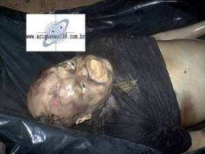 Apesar do estado de decomposição do corpo, peritos conseguiram identificar várias marcas de objetos pontiagudos e tiros pelo corpo.