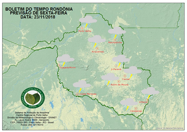 A Divisão de Meteorologia do Sistema de Proteção da Amazônia informa que nesta sexta-feira a instabilidade ainda se espalha por todo o Sul da Amazônia, inclusive em Rondônia.