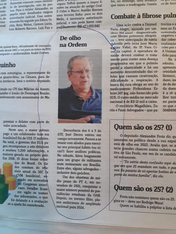 Em dezembro de 2019, o ex-ministro petista José Dirceu, condenado por corrupção, teria participado de um jantar, onde explicou um plano espantoso: aparelhar e ganhar as eleições da OAB na maioria dos estados até o final de 2021.