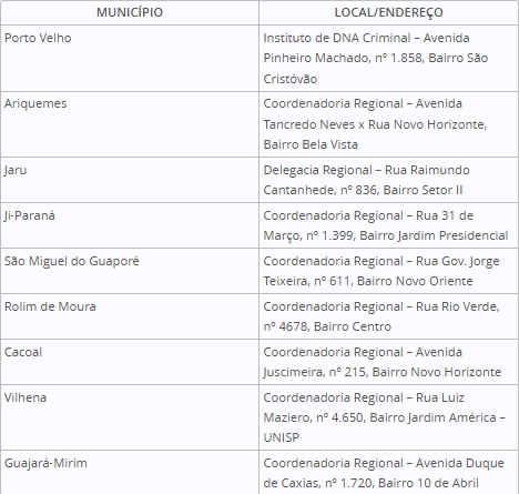 Entre os dias 5 e 15 de agosto, o governo de Rondônia convoca familiares de pessoas desaparecidas, especialmente de primeiro grau, para coleta de DNA. A coleta, realizada pela Superintendência de Polícia Técnico-Científica (Politec) é rápida, simples e indolor, por swab bucal (cotonete estéril), e acontece em diversas unidades estaduais, como parte da Campanha Nacional coordenada pelo Ministério da Justiça e Segurança Pública (MJSP). Embora a mobilização ocorra nesse período, a coleta pode ser feita durante todo o ano em qualquer unidade da Politec em Rondônia, no horário das 7h30 às 13h30.