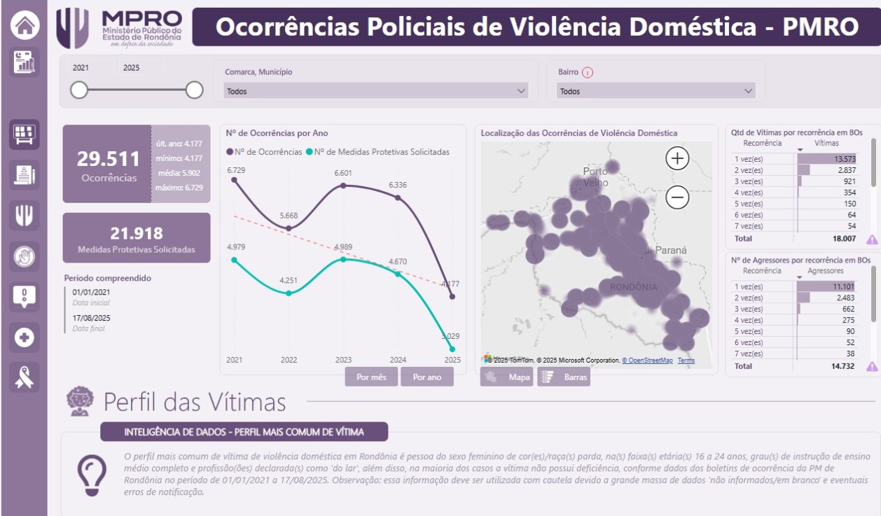 Outro dado do mapa da violência, o número de ocorrências policiais registradas neste ano é 4.177. Cumulativamente, de 2021 para cá, foram 29.511 ocorrências, que resultaram em 21.918 medidas protetivas.