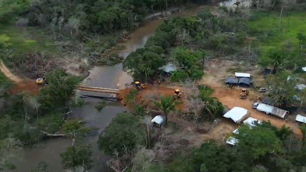 Além disso, pelo menos quatro tratores de grande porte foram flagrados trabalhando dentro da área na fundiária da fazenda, realizando abertura de estradas, construção de pontilhões e limpeza de áreas para acampamento. As imagens e relatos reforçam a suspeita de que a ocupação vem sendo estruturada para uma permanência prolongada, o que preocupa autoridades e proprietários rurais da região.