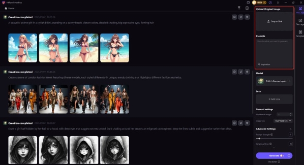 Geração de Imagens por IA: Utiliza algoritmos avançados para visualizar prompts de texto, permitindo criar cenários específicos (por exemplo, "Ídolo de Kpop em roupas técnicas segurando uma espada").