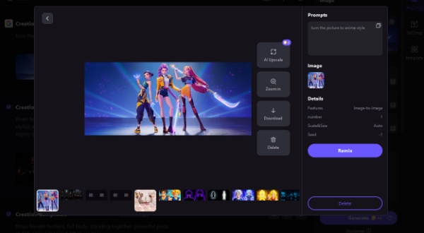 Passo 3: Insira o prompt ou envie a imagem Digite uma descrição detalhada como "ídolo de Kpop, caçador de demônios, cidade cyberpunk, katana brilhante, obra-prima de 8k."