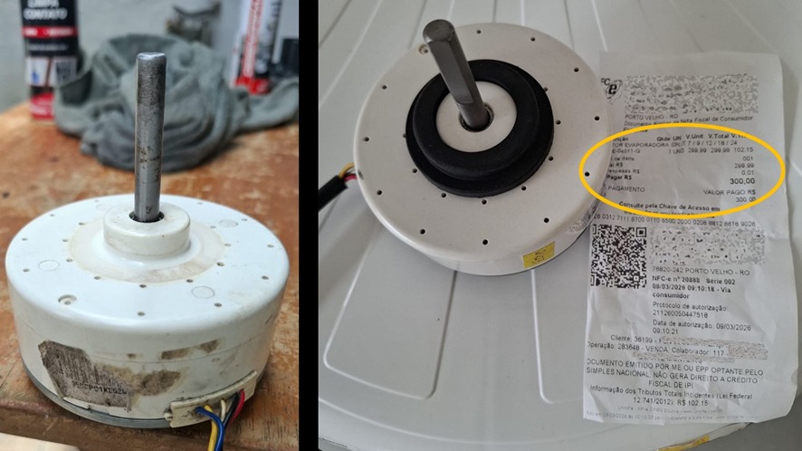 Miro também relata um problema envolvendo a manutenção de um ar-condicionado inverter de 18 mil BTUs. Ele contratou uma empresa para realizar a limpeza do equipamento e o técnico levou o aparelho para sua oficina. Cerca de quatro meses depois, o equipamento começou a apresentar defeitos. Ao entrar em contato, o técnico prometeu visitar sua residência para verificar o problema, mas, segundo o jornalista, nunca apareceu. Ao contratar outro profissional, foi constatado que uma peça nova do motor do ventilador da evaporadora havia sido substituída por uma peça antiga, o que obrigou a compra de um novo componente. A orientação dele é que, sempre que possível, a limpeza do ar-condicionado seja realizada na própria residência do cliente, permitindo o acompanhamento do serviço.