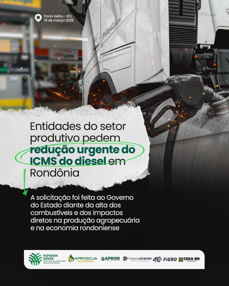 O setor produtivo de Rondônia, representado por entidades como a Federação da Agricultura e Pecuária do Estado de Rondônia – FAPERON, Associação dos Produtores de Soja e Milho de Rondônia – Aprosoja-RO, Associação dos Pecuaristas de Rondônia – Apron, Organização das Cooperativas Brasileiras no Estado de Rondônia – OCB-RO, Federação das Indústrias do Estado de Rondônia – Fiero e Conselho Regional de Engenharia e Agronomia de Rondônia – Crea-RO, solicitou ao Governo do Estado a redução da alíquota do ICMS incidente sobre o óleo diesel.