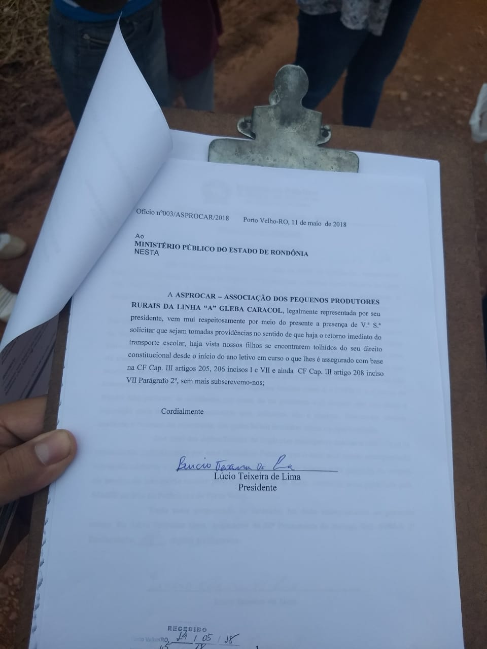 Segundo informações da Polícia Rodoviária Federal, o pleito foi analisado pelo Ministério Público, que teria firmado compromisso para solucionar a demanda, em 72 horas. Foi apresentado um documento, em papel timbrado do Ministério Público Estadual, no qual registra-se a oitiva das partes. Não foi encontrado o registro documental do compromisso de soluções.