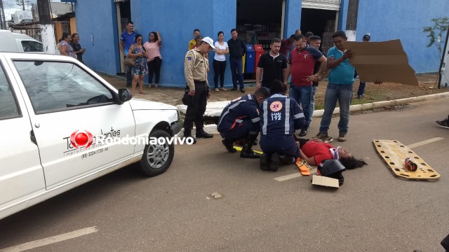 Com o atropelamento, a mulher fraturou uma das pernas e ficou ao solo aguardando socorro médico