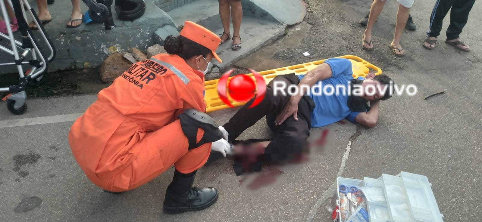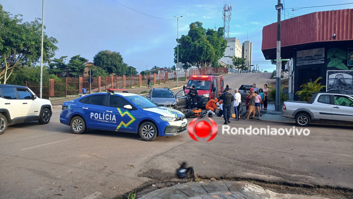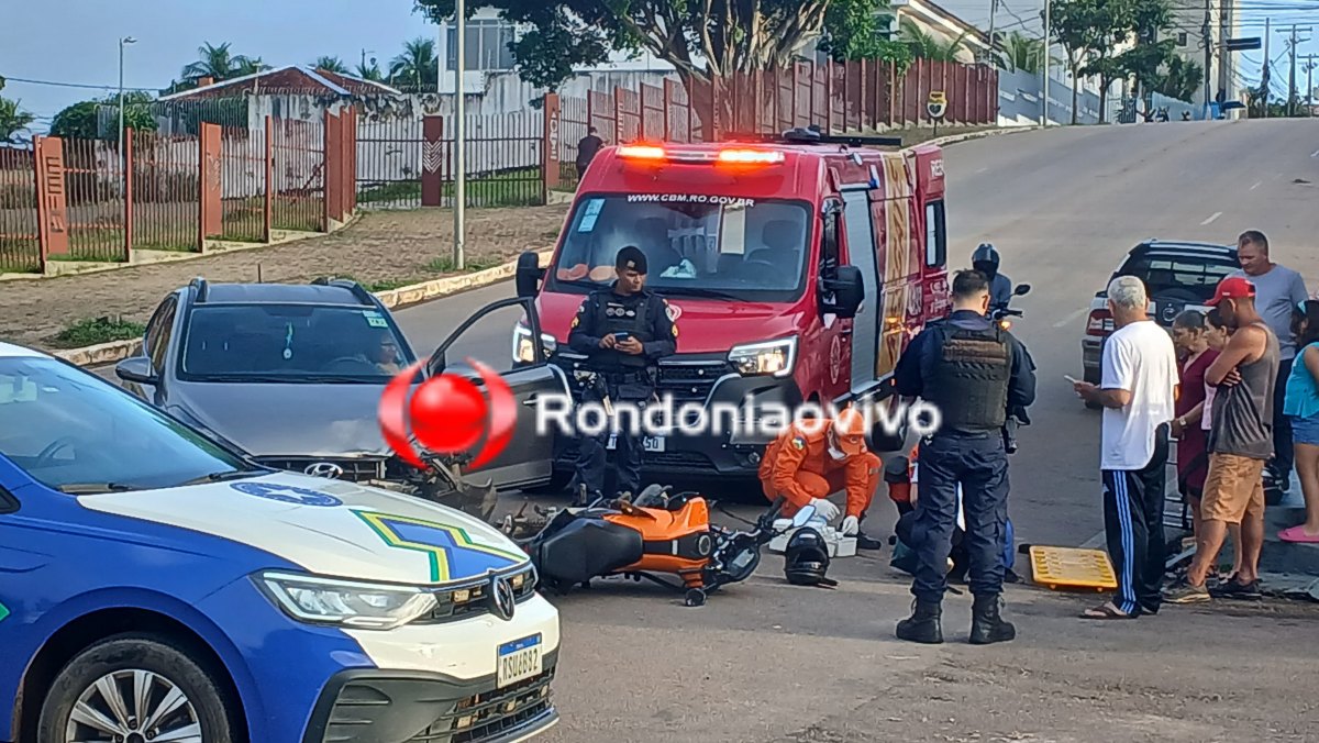 Um motociclista sofreu fratura exposta na perna após colisão com um carro na manhã desta quarta-feira (16) na Avenida Farquar com Rua Renato Medeiros, região Central de Porto Velho (RO).