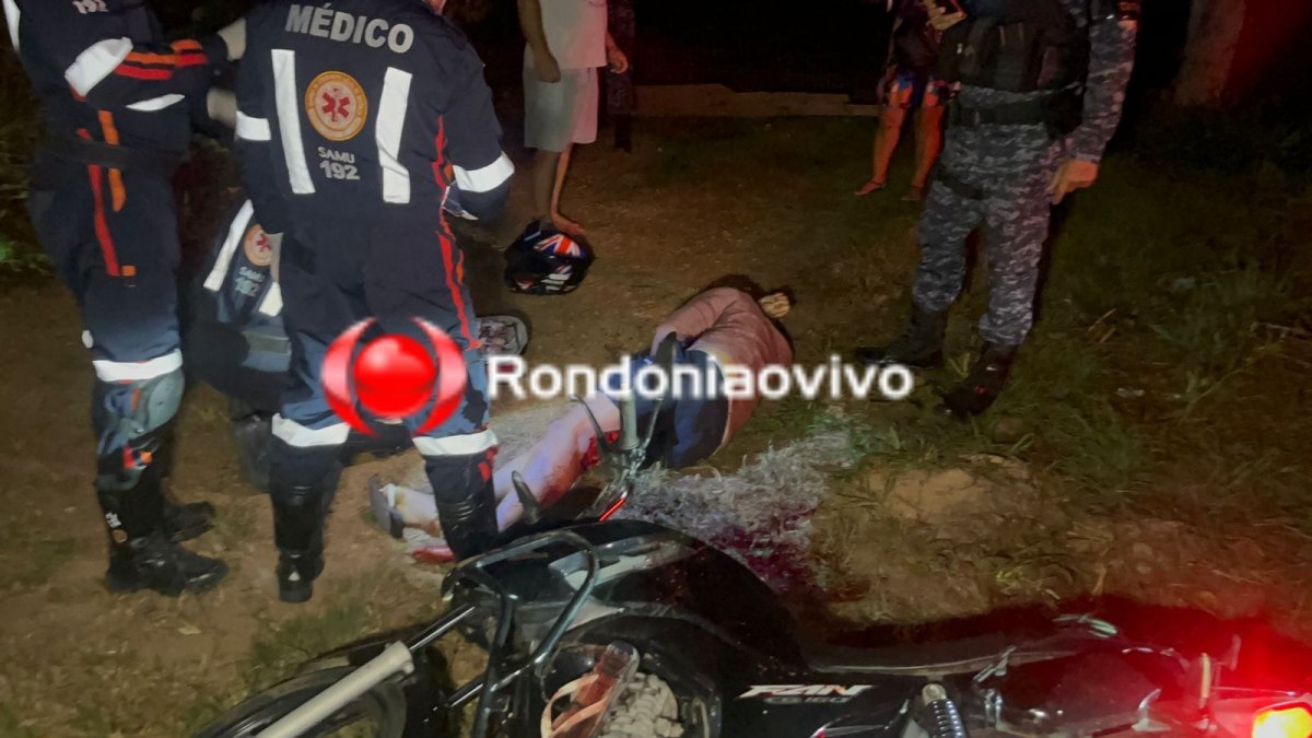 Uma equipe do SAMU foi acionada para prestar socorro ao rapaz ferido na região da coxa. Ele estava em uma moto Honda Titan tentando fugir de uma equipe da Força Tática.