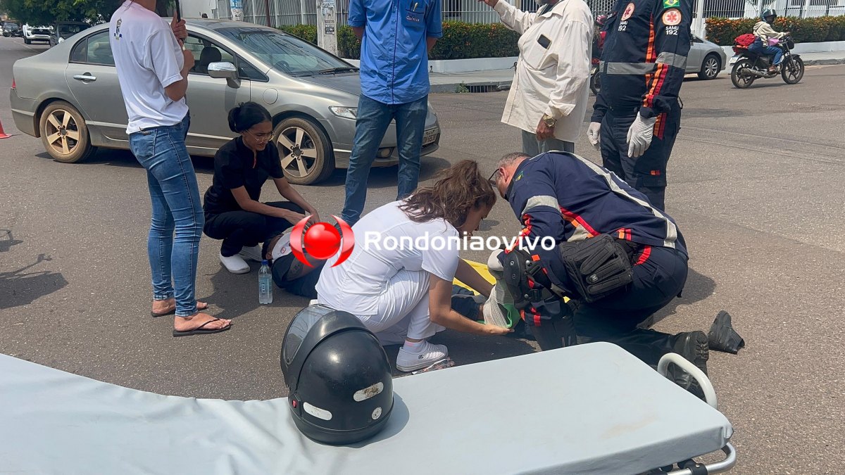 O motociclista com suspeita de fratura em uma das pernas foi socorrido ao hospital João Paulo II e a Polícia Militar foi chamada para registrar a ocorrência.