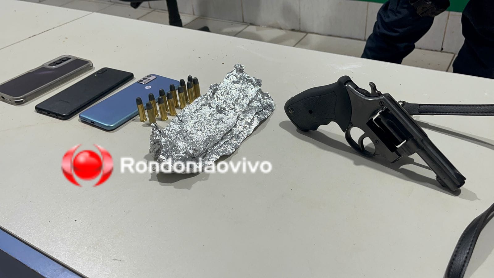 O apenado monitorado por tornozeleira Alexsandro F. S., 24, e uma mulher de 27 anos, foram presos com uma arma, moto roubada e drogas no final da noite de quinta-feira (12) na Avenida Calama, próximo da Humaitá, bairro Teixeirão, zona Leste da capital de Rondônia.