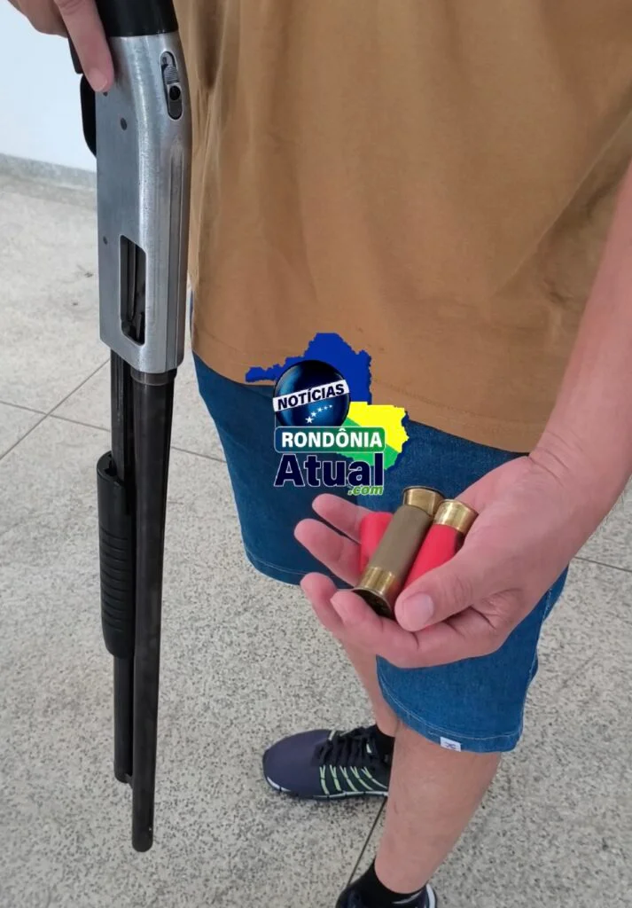 Durante as diligências, os agentes cumpriram mandado de busca no apartamento onde o acusado estava residindo e encontraram uma escopeta calibre 12, além de diversas munições.