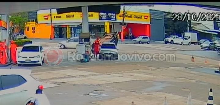 Por muita sorte um frentista que abastecia o veículo Celta não foi atingido na hora do acidente