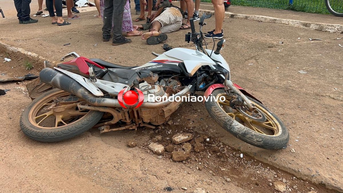 Dois motociclistas foram socorridos por equipes do SAMU. Testemunhas disseram que o condutor da motocicleta Shineray seguia na Rua Mário Andreazza sentido  a Avenida Mamoré e o violento acidente aconteceu quando o condutor de uma  moto Honda Titan avançou a preferencial pela José Amador dos Reis em direção a Rua Vila Mariana.