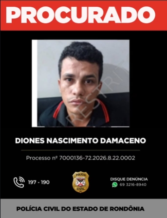 Compartilhe esta informação e ajude a Polícia Civil de Rondônia na localização e captura do foragido