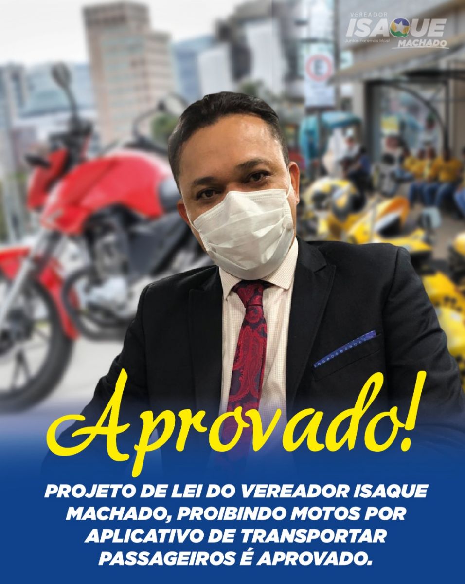 A Câmara Municipal de Porto Velho aprovou, na sessão desta segunda-feira (13), o Projeto de Lei 4024/20 de autoria do vereador Isaque Machado (Patriota), que proíbe o uso de motos particulares cadastradas em aplicativos para transporte individual de passageiro. A matéria agora segue para a sanção do prefeito Hildon Chaves (PSDB), para virar lei.