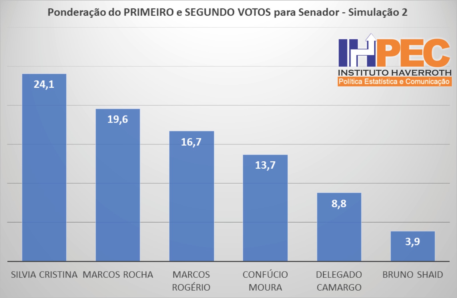 Na Simulação 2, com a entrada de Marcos Rogério no cenário do Senado, os números foram: